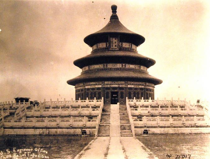 Keywords: building architecture tower 111-SC-75017: Boxer Rebellion (Chinese Relief Expedition), 1900. Temple of Heaven, Peking. Headquarters of the British forces with the Chinese Relief Expedition, 1900. Photographed by Captain C. E. O’Keefe, 36th Infantry, U.S.A. Courtesy of the National Archives. (5/19/2015). 111-SC-75017: Boxer Rebellion (Chinese Relief Expedition), 1900. Temple of Heaven, Peking. Headquarters of the British forces with the Chinese Relief Expedition, 1900. Photographed by Captain C. E. O’Keefe, 36th Infantry, U.S.A. Courtesy of the National Archives. (5/19/2015). |