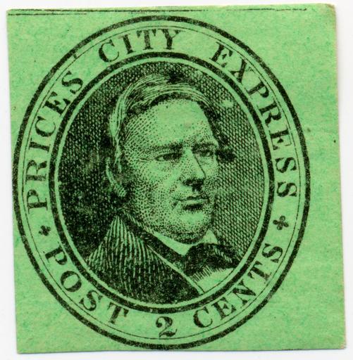 | Keywords: 119L3 1858 Prices City Epress - Post 2 Cents - Green.jpg 1858 local Price's City Express 2-cent US postage stamp imperforate Scott 119L3 black on green Scanned by me from a stamp from my collection 2006-12-16 R A Nonenmacher PD-old 1858 stamps Local Stamps of the United States Local 119L3 People of the United States on stamps |