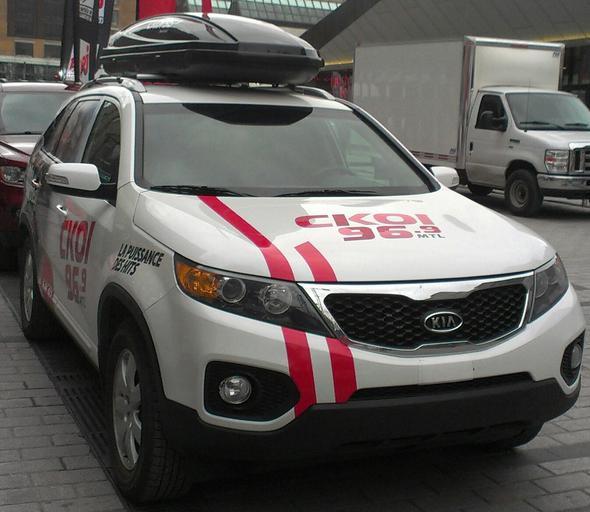 Keywords: '11-'13 Kia Sorento de 96,9 CKOI.jpg A 96 9 CKOI vehicle of a 2011-2013 Kia Sorento photographed in Montreal Quebec Canada during the red-carpet performance of the Gala Artis Kia Sorento XM Own 2015-04-26 Bull-Doser All Rights Released