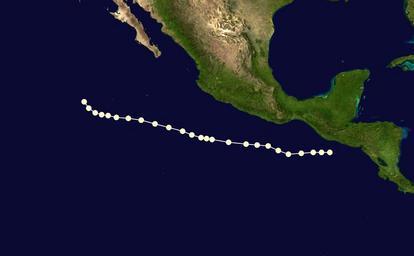 Keywords: 11E 1954 track.png Track map of Hurricane Eleven of the 1954 Pacific hurricane season The points show the location of the storm at 6-hour intervals The color represents the storm's maximum sustained wind speeds as classified in the Saffir-Simpson Hurricane Scale see below and the shape of the data points represent the nature of the storm according to the legend below User Nilfanion/Tc/T The background image is from NASA Tracking data is from http //www aoml noaa gov/hrd/hurdat/tracks1949to2010_epa html HURDAT 2013-06-06 Supportstorm Tropical cyclone tracks Pacific hurricane tracks Pacific hurricanes in the 1950s |