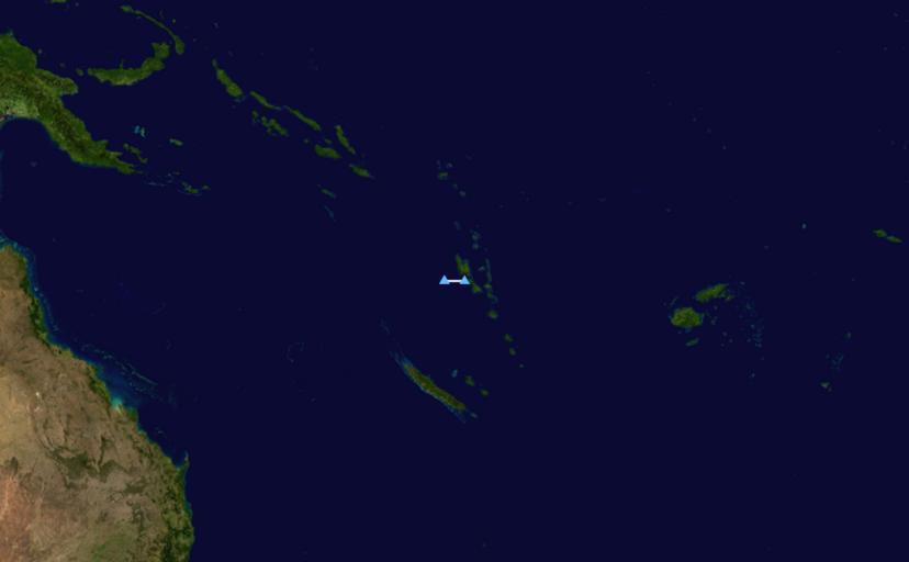| Keywords: 11F 2002 track.png Track map of Tropical Disturbance 11F of the 2001 “02 South Pacific cyclone season The points show the location of the storm at 6-hour intervals The colour represents the storm's maximum sustained wind speeds as classified in the Saffir-Simpson Hurricane Scale see below and the shape of the data points represent the nature of the storm according to the legend below User Nilfanion/Tc/T Created using Wikipedia WikiProject Tropical cyclones/Tracks The background image is from NASA Tracking data from the Meteorological Service of New Zealand Limited 's best track <sup>ftp //eclipse ncdc noaa gov/pub/ibtracs/original-bt-data-files/wellington/TC_BT_1967_2006 xls</sup> 2010-12-12 Cyclonebiskit 2001-02 South Pacific cyclone season track maps |