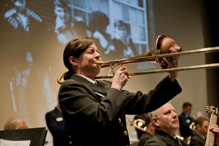 | Keywords: krupa trombone navy memorial washington commodores arleigh burke krupatrombonenavymemorialwashingtoncommodoresarleighburke krupa trombone navy memorial washington commodores arleigh burke band krupatrombonenavymemorialwashingtoncommodoresarleighburkeband 120227-N-RH386-108 WASHINGTON, D.C. (February 27, 2012) Musician 1st Class Jennifer Krupa plays trombone with the Navy Band Commodores jazz ensemble during a noontime concert in the Arleigh Burke Theater at the U.S. Navy Memorial in Washington, D.C. The performance was part of the Navy Band's "Pioneers of Navy Music: A History of African Americans in the Navy Music Program." The Navy Band is in the process of celebrating Black History Month by presenting a series of concerts at the U.S. Navy Memorial commemorating the musical and cultural contributions of African-American composers and performers to the U.S. Navy and the nation. (U.S. Navy Photo by MU1 Brian Bowman/Released) 120227-N-RH386-108 WASHINGTON, D.C. (February 27, 2012) Musician 1st Class Jennifer Krupa plays trombone with the Navy Band Commodores jazz ensemble during a noontime concert in the Arleigh Burke Theater at the U.S. Navy Memorial in Washington, D.C. The performance was part of the Navy Band's "Pioneers of Navy Music: A History of African Americans in the Navy Music Program." The Navy Band is in the process of celebrating Black History Month by presenting a series of concerts at the U.S. Navy Memorial commemorating the musical and cultural contributions of African-American composers and performers to the U.S. Navy and the nation. (U.S. Navy Photo by MU1 Brian Bowman/Released) |
