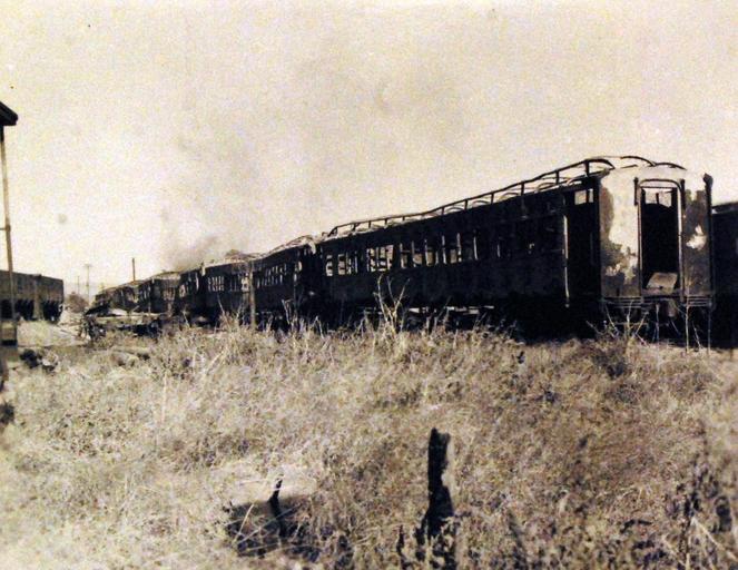 | Keywords: vehicle outdoor railroad train 127-GW-1643-146886: Atomic Bomb-Nagasaki, 1945. Bombed and burned railroad cars at Minami Kumamoto railroad station. Photographed by Rogers at Nagasaki, Japan, October 28, 1945. Official U.S. Marine Corps Photograph, now in the collections of the National Archives. (2016/10/25). 127-GW-1643-146886: Atomic Bomb-Nagasaki, 1945. Bombed and burned railroad cars at Minami Kumamoto railroad station. Photographed by Rogers at Nagasaki, Japan, October 28, 1945. Official U.S. Marine Corps Photograph, now in the collections of the National Archives. (2016/10/25). |