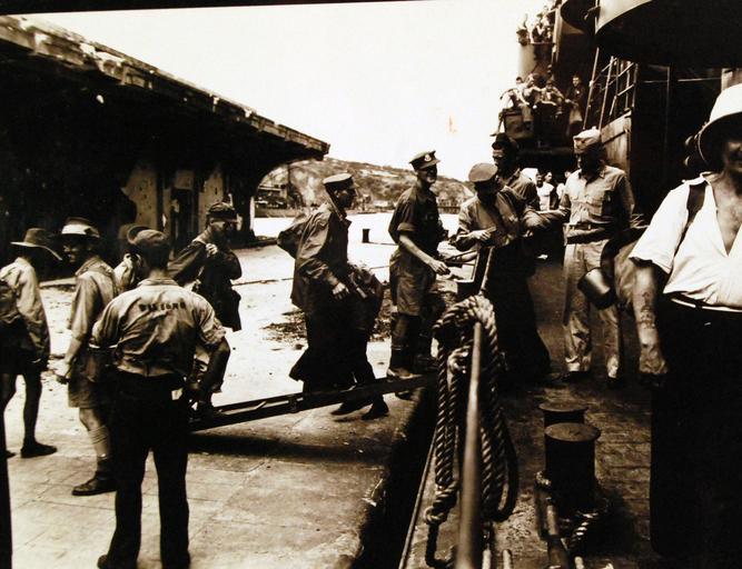 | Keywords: people outdoor 127-GW-244-135129: Freed British and Australian prisoners of war go aboard USS Thomas E. Gary (DE 326) after liberation by U.S. Marines on Formosa. Men are weak from malnutrition and must be helped on board, 1945. The POWs would then be transferred to USS Block Island (CVE 106) and USS Santee (CVE 29) off shore, September 6, 1945. (5/5/2015). 127-GW-244-135129: Freed British and Australian prisoners of war go aboard USS Thomas E. Gary (DE 326) after liberation by U.S. Marines on Formosa. Men are weak from malnutrition and must be helped on board, 1945. The POWs would then be transferred to USS Block Island (CVE 106) and USS Santee (CVE 29) off shore, September 6, 1945. (5/5/2015). 127-GW-244-135129: Freed British and Australian prisoners of war go aboard USS Thomas E. Gary (DE 326) after liberation by U.S. Marines on Formosa. Men are weak from malnutrition and must be helped on board, 1945. The POWs would then be transferred to USS Block Island (CVE 106) and USS Santee (CVE 29) off shore, September 6, 1945. (5/5/2015). Freed British and Australian prisoners of war go aboard USS Thomas E. Gary (DE 326) after liberation by U.S. Marines on Formosa 17392168541 3974e589d7 o.jpg 127-GW-244-135129 Freed British and Australian prisoners of war go aboard USS Thomas E Gary DE 326 after liberation by U S Marines on Formosa Men are weak from malnutrition and must be helped on board 1945 The POWs would then be transferred to USS Block Island CVE 106 and USS Santee CVE 29 off shore September 6 1945 5/5/2015 https //www flickr com/photos/127906254 N06/17392168541/ 127-GW-244-135129 http //archive is/3LcIz archived page 2015-05-05 10 56 https //www flickr com/people/127906254 N06 National Museum of the U S Navy PD-USGov-Military-Navy Amitie 10g 2016-11-21 USS Thomas J Gary DE-326 United States Navy in Taiwan British prisoners of war of World War II Australian prisoners of war of World War II 1945 in Taiwan Prisoner-of-war camps in Taiwan Port of Keelung |