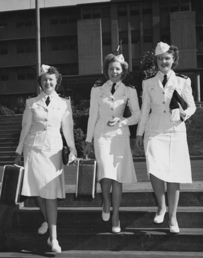 | Keywords: people groupshot blackandwhite monochrome black and white U.S. Naval Hospital, Aiea Heights, Oahu, Territory of Hawaii - The Carey Sisters of Mercy have arrived to care for the marines and sailors wounded in the Pacific battle area. The Boulder, Mont., young women are shown in front of the nurses' quarters at the large naval hospital, which overlooks Pearl Harbor. The sisters are graduates of St. James Hospital, Butte, Mont. and entered the service August 1943, and had naval hospital duties at Mare Island and Corona, Cal., before coming overseas. Left to right: LTJG Agnes Carey NC USNR, LTJG Josephine Carey NC USNR, and LTJG Lillian Carey NC, USNR. [World War 2]. 12-0169-002 U.S. Naval Hospital, Aiea Heights, Oahu, Territory of Hawaii - The Carey Sisters of Mercy have arrived to care for the marines and sailors wounded in the Pacific battle area. The Boulder, Mont., young women are shown in front of the nurses' quarters at the large naval hospital, which overlooks Pearl Harbor. The sisters are graduates of St. James Hospital, Butte, Mont. and entered the service August 1943, and had naval hospital duties at Mare Island and Corona, Cal., before coming overseas. Left to right: LTJG Agnes Carey NC USNR, LTJG Josephine Carey NC USNR, and LTJG Lillian Carey NC, USNR. [World War 2]. 12-0169-002 |