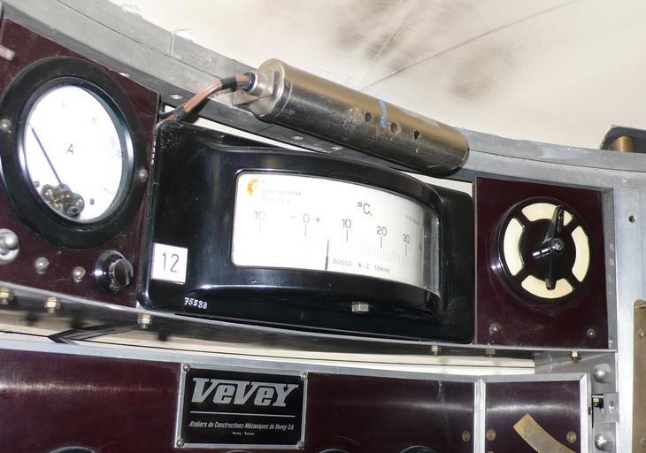 | Keywords: 12 Bathyscaph Trieste German Museum Munich.JPG Bathyscaph Trieste German Museum Munich 1 Schalttafel für die Außenbeleuchtung 3 Scheinwerfer Quecksilberdampflampen an der Unterseite des Schwimmkörpers und 2 Glühlampen in Stahlgehäusen am Beobachtungsfenster der Tauchkugel und im Vorzimmer Ateliers de Constructions Mécaniques de Vevey S A Vevey Schweiz 2 Schalttafel zur Betätigung der Ballastschleusen und anderen Einrichtungen Ateliers de Constructions Mécaniques de Vevey S A Vevey Schweiz 3 Schalttafel für die Antriebsmotoren Ateliers de Constructions Mécaniques de Vevey S A Vevey Schweiz 4 Reservematerial 5 Chronometer des Fabrikats wie es auch bei den Ballonflügen in die Stratosphäre 1931 und 1932 von Auguste Piccard benutzt wurde Ateliers de Constructions Mécaniques de Vevey S A Vevey Schweiz 6 Totalisator zur Kontrolle der Ballastabgabe Mit zwei Sekunden-Zählwerken die nur laufen wenn der Strom der zugehörigen Ballastschleuse unterbrochen ist und Ballast abgegeben wird Da der Ballastausfluß jeder Schleuse ziemlich genau 10 kg je Sekunde beträgt kann man sofort erkennen wie viel Ballast verbraucht worden ist Langines Compagnie des Mantres Longines Francillon S A St Imier Schweiz 7 Manometer die zur Ermittlung der Tauchtiefe den Wasserdruck messen Haenni Jegenstorf Schweiz 8 Hochdruckventil 1200 kp/qcm Maschinenfabrik Burckhardt Aktiengesellschaft Basel Schweiz 9 Wasserdichter und explosionsgeschützter Fernsprechapparat für Batteriebetrieb mit einer Buchse im Schwimmkörper so dass nach dem Auftauchen eine Kabelverbindung mit Begleitfahrzeugen hergestellt und so beim Tauchen bis in geringe Tiefen aufrechterhalten werden kann Società Italiana Telecomunicazioni Siemens s p a Milano Italien 10 Automatische Filmkamera Bolex H 16 Reflex Paillard S A Ste Croix Schweiz 11 Photographische Kamera Exakta Ihagee Kamerawerk A G Dresden 12 Anzeigeinstrument des Nickelwiederstandsthermometers zur Messung der Temperatur des Tragebenzins Bosco Co S p a Torino Italien 13 Pendel zur Bestimmung der Trimmlage 14 Zink-Silber-Akkumulatoren zum Betrieb elektrischer Geräte der Ballastschleusen der Haltemagnete der Antriebsmotoren der Ventilatoren der Scheinwerfer Lampen und Innenbeleuchtung 330 Zellen zu je 1 5 Volt Electrona S A Boudry Schweiz 15 Pressluftflaschen zum Ausblasen des Wassers aus Vorzimmer und Einsteigeschacht AGA A G Pratteln-Zürich-Genf 16 Sauerstoff-Flaschen der Belüftungsanlage um den Sauerstoffgehalt der Atemluft in der Tauchkugel zu erneuern AGA A G Pratteln-Zürich-Genf 17 Natronpatronen Aus den Druckflaschen in einem Injektor strömender Sauerstoff saugt Raumluft durch diese drei Patronen Kohlendioxyd wird absorbiert und die gereinigte Luft gelangt gemischt mit Sauerstoff im Kreislauf in die Kabine zurück Drägerwerk Lübeck 18 Schalttafel Ateliers de Constructions Mécaniques de Vevey S A Vevey Schweiz 19 Unterwassertelefon nach Russel Lewis Laboratorium für Unterwasserschall New London Connecticut USA mit dem auch während des Tauchens eine Sprech- oder Signalverbindung mit dem Begleitschiff aufrechterhalten werden kann Die beim Sprechen auf das Mikrofon auftreffenden Schallwellen werden im Bereich von 300 bis 3000 Hertz in elektrische Schwingungen und nach Verstärkung zur à bertragung im Wasser in Unterschallschwingungen von 8387 bis 11087 Hertz umgewandelt Einseitenband-Modulation mit unterdrücktem Träger Beim Empfang findet der umgekehrte Vorgang statt 20 Echolot 21 Log zum messen der Vertikalgeschwindigkeit 22 Innenbeleuchtung mit 6 kleinen Glühlampen zur Beobachtung der Instrumente Sie beleuchten die weiß gestrichene Decke der Tauchkugel und sind gegen die Besatzung abgeschirmt um Blendwirkung zu vermeiden 23 Traggerüste für die Geräteausstattung Verformungen der Kugel durch Temperaturänderungen werden von Schraubfedern aufgenommen die in Bohrungen am oberen Ende der Stangen sitzen und einen Messingkolben gegen die Kugelwand drücken Ateliers de Constructions Mécaniques de Vevey S A Vevey Schweiz 24 Sitze 25 Fußboden der den Keller abdeckt Im Keller werden Alkalipatronen zur Erneuerung der Atemluft Druckgasflaschen zum Ausblasen des Einsteigschachtes nach einer Tauchfahrt und anderes Reservematerial aufbewahrt 26 Tauchkugel Fried Krupp Essen 27 Einsteigeluke 28 Hauptbeobachtungsfenster 29 Tonbandgerät Kudelski Enregistreur autonomes Nagra Paudex-Lausanne own Reinraum 2010-09-19 Trieste submarine 1953 |