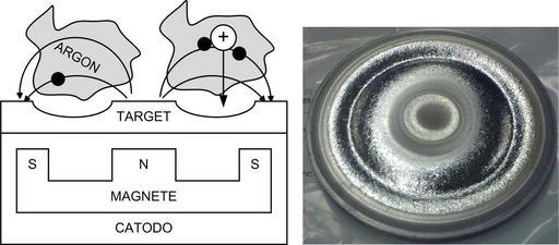 Keywords: 12 Circular Planar Magnetron Target.png en Planar Circular Al Target of a DC Sputtering Magnetron it bersaglio di alluminio di uno spattering magnetico own Axelfusillo 2009 Sputtering