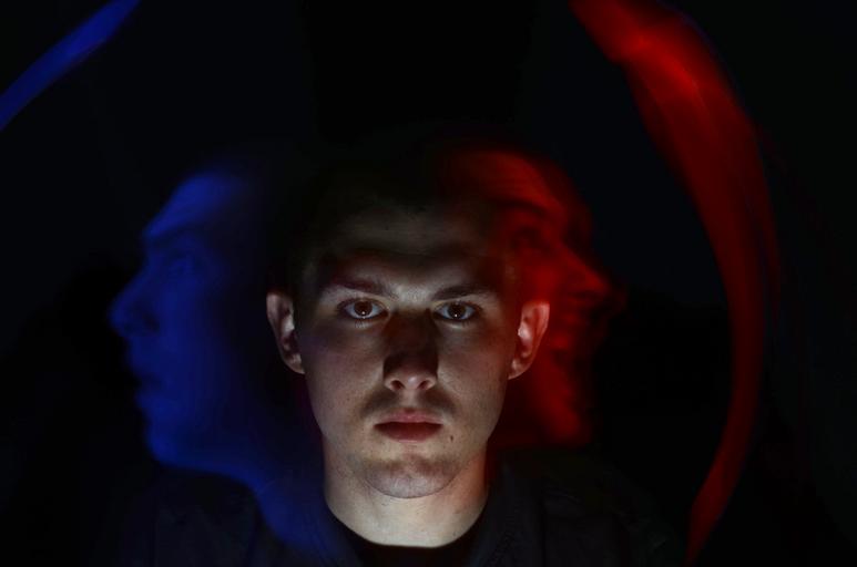 Keywords: emotion light red blue frightened angry serious self portrait selfportrait enright indoor people Seaman Patrick M. Enright, a student from the Basic Photographic class 080-13 at the Defense Information School, demonstrates a range of emotion using colored light on Jun. 08, 2013. Enright was experimenting with long exposure photography. (U.S. Navy Photo by Seaman Patrick M. Enright/Released) Cropped and level corrected to highlight the subject. Seaman Patrick M. Enright, a student from the Basic Photographic class 080-13 at the Defense Information School, demonstrates a range of emotion using colored light on Jun. 08, 2013. Enright was experimenting with long exposure photography. (U.S. Navy Photo by Seaman Patrick M. Enright/Released) Cropped and level corrected to highlight the subject.