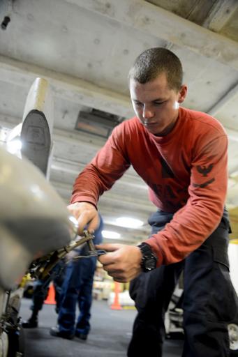 Keywords: 131030-N-CE241-082 (10689343746).jpg U S Navy Aviation Ordnanceman 3rd Class Nickolas Smith assigned to Strike Fighter Squadron VFA 37 performs maintenance on a BRU-41 improved multiple ejector rack in the hangar bay aboard the aircraft carrier USS Harry S Truman CVN 75 in the Strait of Hormuz Oct 30 2013 The Harry S Truman Carrier Strike Group deployed to the U S 5th Fleet area of responsibility to conduct maritime security operations support theater cooperation efforts and support Operation Enduring Freedom DoD photo by Mass Communication Specialist Seaman Laura Hoover U S Navy/Released https //www flickr com/photos/39955793 N07/10689343746/ 131030-N-CE241-082 2013-10-30 08 38 https //www flickr com/people/39955793 N07 U S Department of Defense Current Photos PD-USGov U S Department of Defense Current Photos https //flickr com/photos/39955793 N07/10689343746 2016-09-03 07 51 56 United States Government Work Strait of Hormuz USS Harry S Truman CVN-75 United States Department of Defense |