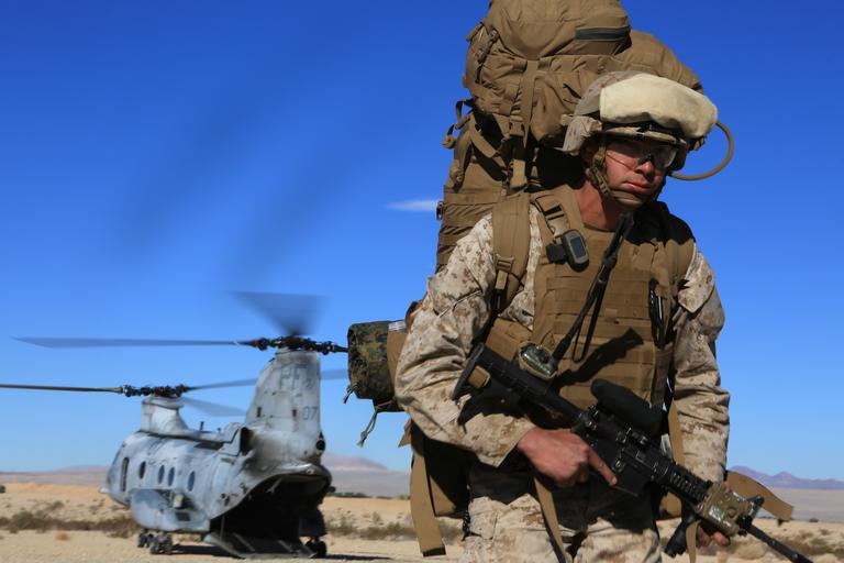 Keywords: 131211-M-EF955-179 (11360367005).jpg U S Marine Corps Staff Sgt Raul Dominguez platoon sergeant with Charlie Company 1st Battalion 5th Marine Regiment 1/5 1st Marine Division MARDIV debarks a CH-46E Sea Knight transport helicopter with Marine Medium Helicopter Squadron HMM 364 Marine Aircraft Group MAG 39 3rd Marine Aircraft Wing MAW during an airfield seizure while participating in exercise Steel Knight 2014 SK-14 at Camp Wilson Marine Corps Air Ground Combat Center in Twentynine Palms Calif Dec 11 2013 SK-14 is a large scale combined arms live-fire exercise integrating ground troops from 1st MARDIV aviation and logistical support from 3rd MAW and 1st Marine Logistics Group to ensure that our nation is fully prepared for employment as a maneuver force across the range of military operations DoD photo by Sgt Keonaona C Paulo 3rd MAW Combat Camera U S Marine Corps/Released https //www flickr com/photos/39955793 N07/11360367005/ 131211-M-EF955-179 2013-12-11 10 58 https //www flickr com/people/39955793 N07 U S Department of Defense Current Photos PD-USGov U S Department of Defense Current Photos https //flickr com/photos/39955793 N07/11360367005 2016-09-03 07 32 14 United States Government Work 1st Battalion 5th Marines CH-46 US Marine Corps Steel Knight 14 Males with M4 carbine Marine Medium Helicopter Squadron 364 Marine Corps Air Ground Combat Center Twentynine Palms Camp Wilson Marine Corps Air Ground Combat Center Twentynine Palms M4 carbine with foregrip Advanced Combat Optical Gunsight on M4 carbine |