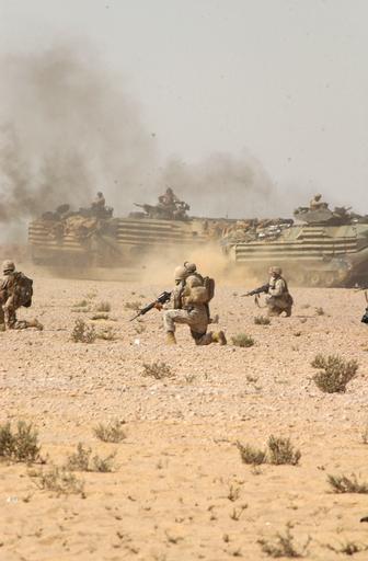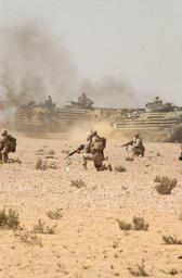 Keywords: 13th Marine Expeditionary Unit DVIDS10286.jpg en Marines from Battalion Landing Team 2nd Battalion 1st Marines Echo Company attached to the 13th Marine Expeditionary Unit Special Operations Capable assault through targets as the Amphibious Assault Vehicles pull away to provide suppressing fire during a live-fire range during Exercise Bright Star Sept 20 The exercise is designed to enhance the interoperability and cohesiveness of coalition forces through various training scenarios to include amphibious and combined-arms operations The six-week exercise affords U S service members the opportunity to build awareness and relationships with the host nation of Egypt and fellow coalition forces The 13th MEU is currently on a Western Pacific deployment in support of the Global War on Terrorism Official U S Marine Corps Photo by Cpl Chad H Leddy released 2005-09-26 https //www dvidshub net/image/10286 10286 2005-09-26 19 06 PD-USGov 13th Marine Expeditionary Unit Images from DoD uploaded by Fæ 2nd Battalion 1st Marines |
