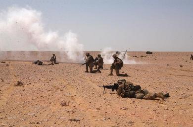 Keywords: 13th Marine Expeditionary Unit DVIDS10289.jpg en Marines from Battalion Landing Team 2nd Battalion 1st Marines Echo Company attached to the 13th Marine Expeditionary Unit Special Operations Capable assault through targets during a live-fire range during Exercise Bright Star Sept 20 The exercise is designed to enhance the interoperability and cohesiveness of coalition forces through various training scenarios to include amphibious and combined-arms operations The six-week exercise affords U S service members the opportunity to build awareness and relationships with the host nation of Egypt and fellow coalition forces The 13th MEU is currently on a Western Pacific deployment in support of the Global War on Terrorism Official U S Marine Corps Photo by Cpl Chad H Leddy released 2005-09-26 https //www dvidshub net/image/10289 10289 2005-09-26 19 06 PD-USGov 13th Marine Expeditionary Unit Images from DoD uploaded by Fæ 2nd Battalion 1st Marines |