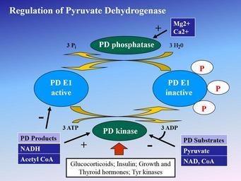 Keywords: 1400x1048 pdh regulation.png en Diagram showing regulation of the enzyme pyruvate dehydrogenase PD by PD kinase and PD phosphatase This includes regulation by the substrates and products of PD and by ATP and ADP and by Mg2+ and Ca2+ ions own Rmostell Ray Mosteller 2009-08-29 1680x1050_pdh_regulation png Enzymes |
