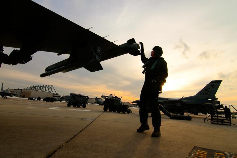 | Keywords: usaf u.s. air force usairforce air force airforce ang air national guard airnationalguard nj new jersey air national guard newjerseyairnationalguard ac atlantic city atlanticcity airman airmen flight line flightline f-16c f16c fighting falcon fightingfalcon viper jersey devils jerseydevils maintenance weather cold military training night egg harbor township eggharbortownship new jersey newjersey united states unitedstates creative commons royalty free public domain photo photograph digital matt hecht getty reuters ap outdoor U.S. Air Force Lt. Col. Thor Himley from the New Jersey Air National Guard's 177th Fighter Wing inspects the weapons on his F-16C Fighting Falcon prior to night flying training on Jan. 23 at Atlantic City Air National Guard Base, N.J. The 177th Fighter Wing conducted normal training operations despite low temperatures and the remnants of Winter Storm Janus. (U.S. Air National Guard photo by Tech. Sgt. Matt Hecht/Released) U.S. Air Force Lt. Col. Thor Himley from the New Jersey Air National Guard's 177th Fighter Wing inspects the weapons on his F-16C Fighting Falcon prior to night flying training on Jan. 23 at Atlantic City Air National Guard Base, N.J. The 177th Fighter Wing conducted normal training operations despite low temperatures and the remnants of Winter Storm Janus. (U.S. Air National Guard photo by Tech. Sgt. Matt Hecht/Released) |