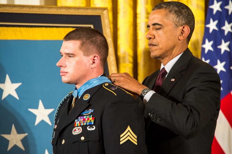 | Keywords: 140513-A-KH856-369 (14190994174).jpg President Barack Obama presents the Medal of Honor to former U S Army Sgt Kyle J White during a ceremony May 13 2014 at the White House in Washington D C White was recognized for exposing himself to enemy fire to save the lives of coalition troops during an attack in Aranas Afghanistan Nov 9 2007 White had been assigned to Chosen Company 2nd Battalion 503rd Infantry Regiment 173rd Airborne Brigade Combat Team at the time of the battle DoD photo by Sgt Mikki L Sprenkle U S Army/Released https //www flickr com/photos/39955793 N07/14190994174/ 140513-A-KH856-369 2014-05-13 19 11 https //www flickr com/people/39955793 N07 U S Department of Defense Current Photos PD-USGov U S Department of Defense Current Photos https //flickr com/photos/39955793 N07/14190994174 2016-09-03 06 51 57 United States Government Work District of Columbia Medal of Honor United States Department of Defense |