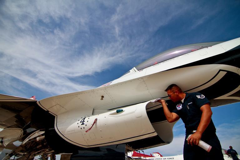 | Keywords: united states air force unitedstatesairforce u.s. air force usairforce usaf ang air national guard airnationalguard new jersey newjersey nj atlantic city atlanticcity atlantic city air national guard base atlanticcityairnationalguardbase 177th fighter wing 177thfighterwing thunderbirds demonstration team demonstrationteam air show airshow thunder over the boardwalk thunderovertheboardwalk security forces squadron securityforcessquadron sfs security sunrise morning patrol guard military photo airman aircraft airplane viper f-16d f16d fighting falcon fightingfalcon airport ac egg harbor township eggharbortownship united states unitedstates creative commons royalty free public domain photograph digital matt hecht getty reuters ap outdoor vehicle U.S. Air Force Staff Sgt. Kurt Hammond from the Thunderbirds Demonstration Team cleans Thunderbird #4 at Atlantic City Air National Guard Base, N.J. on Aug. 11, 2014. The Thunderbirds are performing in N.J. for the Atlantic City "Thunder Over the Boardwalk Airshow" on Aug. 13. (U.S. Air National Guard photo by Tech. Sgt. Matt Hecht/Released) U.S. Air Force Staff Sgt. Kurt Hammond from the Thunderbirds Demonstration Team cleans Thunderbird #4 at Atlantic City Air National Guard Base, N.J. on Aug. 11, 2014. The Thunderbirds are performing in N.J. for the Atlantic City "Thunder Over the Boardwalk Airshow" on Aug. 13. (U.S. Air National Guard photo by Tech. Sgt. Matt Hecht/Released) |