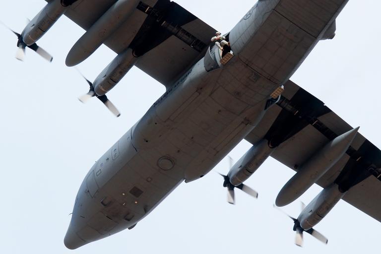 | Keywords: usaf u.s. air force usairforce united states air force unitedstatesairforce air national guard airnationalguard u.s. army usarmy delaware air national guard delawareairnationalguard new jersey air national guard newjerseyairnationalguard army reserve armyreserve airborne civil affairs civilaffairs 177th fighter wing 177thfighterwing c-130 hercules c130hercules coyle drop zone coyledropzone nj new jersey newjersey 227th air support operations squadron 227thairsupportoperationssquadron 166th airlift wing 166thairliftwing united states unitedstates us public domain royalty free getty reuters ap iraq afghanistan c-130 c130 mc-130 mc130 ac-130 ac130 outdoor diagonal A U.S. Army Reserve Soldier from the 404th Civil Affairs Battalion (Airborne) jumps from a C-130 Hercules from the Delaware Air National Guard's 166th Airlift Wing over Coyle Drop Zone, N.J., Oct. 24, 2014. (U.S. Air National Guard photo by Tech. Sgt. Matt Hecht/Released) A U.S. Army Reserve Soldier from the 404th Civil Affairs Battalion (Airborne) jumps from a C-130 Hercules from the Delaware Air National Guard's 166th Airlift Wing over Coyle Drop Zone, N.J., Oct. 24, 2014. (U.S. Air National Guard photo by Tech. Sgt. Matt Hecht/Released) |