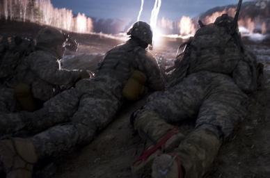 Keywords: paratroopers shoot move communication live fire livefire m4 communicate fire team fireteam soldiers infantry u.s. army usarmy airborne m249 m240b machine gun machinegun mortars training joint base elmendorf-richardson jointbaseelmendorfrichardson u.s. army alaska usarmyalaska usarak jber m320 1st battalion (airborne) 501st infantry regiment 1stbattalionairborne501stinfantryregiment squad battle drills squadbattledrills movement-to-contact movementtocontact alaska usa outdoor Soldiers assigned to Commanche Company, 1st Battalion (Airborne), 501st Infantry Regiment, 4th Infantry Brigade Combat Team (Airborne), 25th Infantry Division, U.S. Army Alaska, coordinate their attack during a platoon live-fire on the Infantry Squad Battle Course at Joint Base Elmendorf-Richardson, Alaska, Tuesday, Nov. 4, 2014. The Soldiers focused on core infantry skills such as fire team movement at night, communication, shifting fire, and once on the objective identifying and eliminating enemy threats with indirect fire. (U.S. Air Force photo/Justin Connaher) Soldiers assigned to Commanche Company, 1st Battalion (Airborne), 501st Infantry Regiment, 4th Infantry Brigade Combat Team (Airborne), 25th Infantry Division, U.S. Army Alaska, coordinate their attack during a platoon live-fire on the Infantry Squad Battle Course at Joint Base Elmendorf-Richardson, Alaska, Tuesday, Nov. 4, 2014. The Soldiers focused on core infantry skills such as fire team movement at night, communication, shifting fire, and once on the objective identifying and eliminating enemy threats with indirect fire. (U.S. Air Force photo/Justin Connaher) |