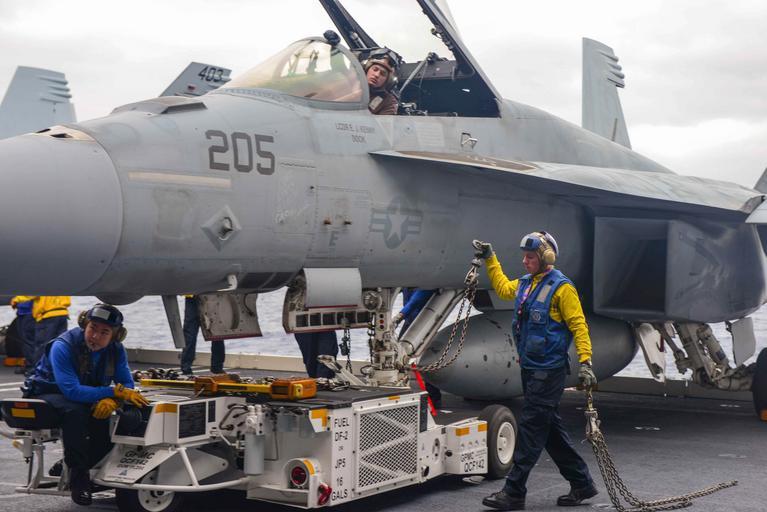 | Keywords: aircraft carrier aircraftcarrier cvn 74 cvn74 john c. stennis johncstennis mcsn christopher frost mcsnchristopherfrost outdoor aircraft vehicle airplane 141210-N-IK337-021 PACIFIC OCEAN (Dec. 10, 2014) - Aviation Boatswain's Mate (Handling) 3rd Class Tom Xue, Aviation Electrician's Mate Airman James Ketler and Aviation Boatswain's Mate (Handling) 3rd Class Ryan Stephenson prepare to move an F/A-18E Super Hornet from the Tophatters of Strike Fighter Squadron (VFA) 14 into the hangar bay of Nimitz-class aircraft carrier USS John C. Stennis (CVN 74). Stennis is currently undergoing an operational training period in preparation for future deployments. (U.S. Navy Photo by Mass Communication Specialist Seaman Christopher Frost / Released) 141210-N-IK337-021 PACIFIC OCEAN (Dec. 10, 2014) - Aviation Boatswain's Mate (Handling) 3rd Class Tom Xue, Aviation Electrician's Mate Airman James Ketler and Aviation Boatswain's Mate (Handling) 3rd Class Ryan Stephenson prepare to move an F/A-18E Super Hornet from the Tophatters of Strike Fighter Squadron (VFA) 14 into the hangar bay of Nimitz-class aircraft carrier USS John C. Stennis (CVN 74). Stennis is currently undergoing an operational training period in preparation for future deployments. (U.S. Navy Photo by Mass Communication Specialist Seaman Christopher Frost / Released) |