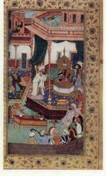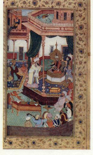 Keywords: 1494-Babur enthroned.png en The Memoirs of Babur or Baburnama are the work of the great-great-great-grandson of Timur Tamerlane Zahiruddin Muhammad Babur 1483-1530 The Baburnama tells the tale of the prince's struggle first to assert and defend his claim to the throne of Samarkand and the region of the Fergana Valley After being driven out of Samarkand in 1501 by the Uzbek Shaibanids he ultimately sought greener pastures first in Kabul and then in northern India where his descendants were the Moghul Mughal dynasty ruling in Delhi until 1858 The miniatures are from an illustrated copy of the Baburnama prepared for the author's grandson the Mughal Emperor Akbar It is worth remembering that the miniatures reflect the culture of the court at Delhi; hence for example the architecture of Central Asian cities resembles the architecture of Mughal India Nonetheless these illustrations are important as evidence of the tradition of exquisite miniature painting which developed at the court of Timur and his successors Timurid miniatures are among the greatest artistic achievements of the Islamic world in the fifteenth and sixteenth centuries Illustrations of Mughals from the Baburnama 183-1530 http //warfare uphero com/Moghul/Baburnama/Baburnama htm Baburnama Painters of Babur PD-old-100 Baburnama Uploaded with UploadWizard Original upload log wikitable - - 2012-11-06 15 05 58 534 × 889 250517 bytes Baloo1000 <nowiki>User created page with UploadWizard</nowiki>