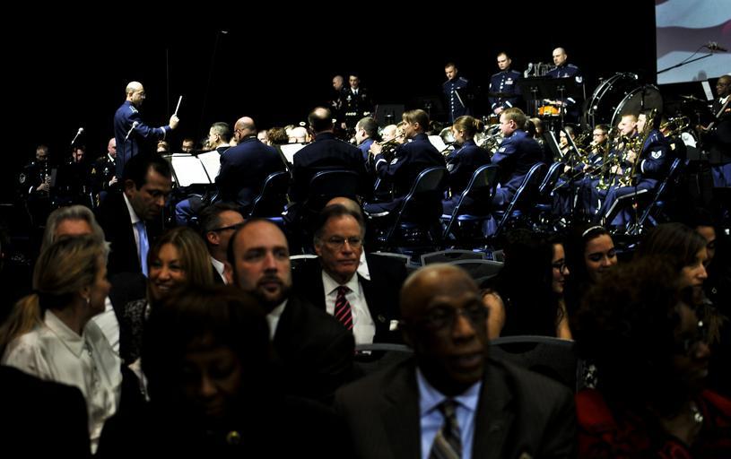 | Keywords: army air force illinois national guard inauguration ceremony governor elect bruce rauner springfield ill. ill state commander chief soldiers airmen 144 566 band peoria usa groupshot people crowd U.S. Air Force Maj. Bryan M. Miller, commander of the 566th Air Force Band, conducts the Illinois National Guard's 144th Army Band and 566th Air Force Band as they perform at the inauguration ceremony of Governor-elect Bruce Rauner in Springfield, Ill., Jan. 12, 2015. As Illinois' governor, Rauner will serve as the commander in chief for the Soldiers and Airmen of the Illinois National Guard while they are not under federal activation. (U.S. Air National Guard photo by Staff Sgt. Lealan Buehrer/Released) U.S. Air Force Maj. Bryan M. Miller, commander of the 566th Air Force Band, conducts the Illinois National Guard's 144th Army Band and 566th Air Force Band as they perform at the inauguration ceremony of Governor-elect Bruce Rauner in Springfield, Ill., Jan. 12, 2015. As Illinois' governor, Rauner will serve as the commander in chief for the Soldiers and Airmen of the Illinois National Guard while they are not under federal activation. (U.S. Air National Guard photo by Staff Sgt. Lealan Buehrer/Released) |
