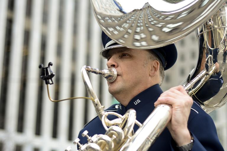 Keywords: air force usaf ang national guard ngb buehrer eu280 z instrumentalist musician band northeast new york city st. st patrick’s day parade airmen million spectators fifth avenue community relations comrel march play instrument celebration irish northcom peoria il usa U.S. Air Force Tech. Sgt. Gregory S. Dunn, an instrumentalist with the 566th Air Force Band, performs with the Air National Guard Band of the Northeast in the New York City St. Patrick's Day Parade in New York March 17, 2015. The band played for spectators along the parade’s Fifth Avenue route as part of its community relations mission. (U.S. Air National Guard photo by Staff Sgt. Lealan Buehrer/Released) U.S. Air Force Tech. Sgt. Gregory S. Dunn, an instrumentalist with the 566th Air Force Band, performs with the Air National Guard Band of the Northeast in the New York City St. Patrick's Day Parade in New York March 17, 2015. The band played for spectators along the parade’s Fifth Avenue route as part of its community relations mission. (U.S. Air National Guard photo by Staff Sgt. Lealan Buehrer/Released) |