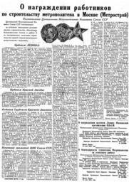| Keywords: Газета Московский Метро 15051935prikaz.TIF ru Вы езка из газеты осковский ет о от 15 мая 1935 года П иказ о наг аждении аботников по ст оительству мет ополитена в оскве ет ост ой Личный а хив О ган политотдела московского мет ополитена имени Л Кагановича 1935-05-15 Aleksandr Ilyich Ganzburg Newspapers of Russia in Russian Newspapers of Russia 1935 PD-old Newspapers of Russia to be categorised by name | ||||