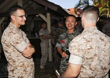 MAKE A MEME View Large Image Republic of Korea Marine Corps Lt. Col. Kim talks to U.S. Marines after touring the USS Essex on Hickam Air Force Base, Hawaii, May 19, 2015. Senior military leaders of allies and partners visited Hawaii to participate in the U.S. Pacific ...
