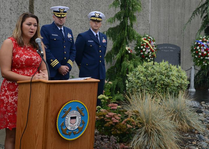 | Keywords: 1505425 Healy diver memorial of USCG Fallen Divers LT. Jessica Hill and PO2 Steven Duque.jpg en Nathalie Duque-Bello the sister of Petty Officer 2nd Class Steven Duque speaks at a rededication ceremony for a memorial dedicated to Duque and Lt Jessica Hill Coast Guard divers who perished during dive operations in the Arctic Ocean in August 2006 at Coast Guard Base Seattle Aug 15 2014 The accident that took the lives of Hill and Duque resulted in policy and organizational changes to the Coast Guard dive program 2014-08-15 10 23 27 https //www dvidshub net/image/1505425/cgc-healy-diver-memorial-rededication U S Coast Guard photo by Petty Officer 2nd Class George Degener other versions PD-USGov Coast Guard in Alaska Women People wearing military uniforms Funerals |