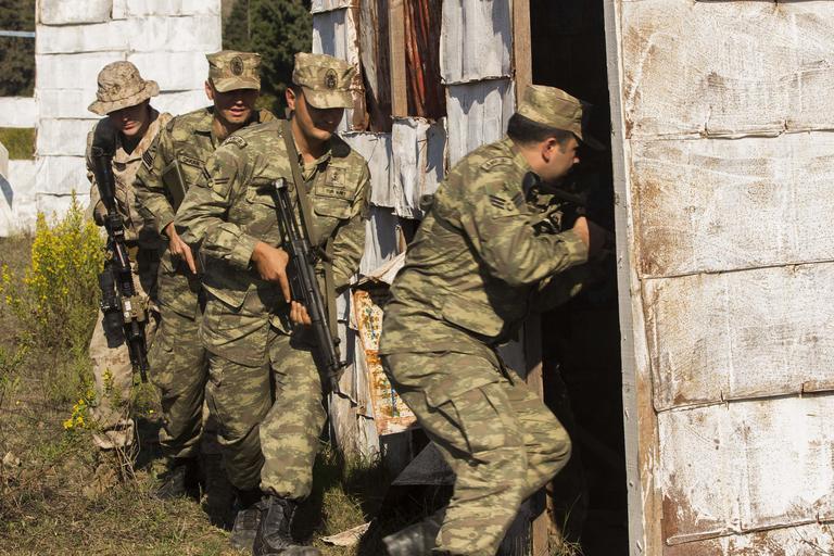| Keywords: comcam usmc uss keasarge usskeasarge 26th meu 26thmeu egemen 2015 egemen2015 turkey dogenbey people 151025-M-ED118-283 DOGANBEY, Turkey (Oct. 25, 2015) U.S. Marines assigned to Golf Company, Battalion Landing Team 2/6, 26th Marine Expeditionary Unit , and Turkish Marines clear buildings during Exercise Egemen 2015 in Doganbey, Turkey Oct. 25. Egemen is a Turkish-led and hosted amphibious exercise designed to increase tactical proficiencies and interoperability among participants. The 26th Marine Expeditionary Unit is deployed to the 6th fleet area of responsibility in support of U.S. national security interests in Europe. (U.S. Marine Corps photo by Cpl. Jalen D. Phillips/ Released) 151025-M-ED118-283 DOGANBEY, Turkey (Oct. 25, 2015) U.S. Marines assigned to Golf Company, Battalion Landing Team 2/6, 26th Marine Expeditionary Unit , and Turkish Marines clear buildings during Exercise Egemen 2015 in Doganbey, Turkey Oct. 25. Egemen is a Turkish-led and hosted amphibious exercise designed to increase tactical proficiencies and interoperability among participants. The 26th Marine Expeditionary Unit is deployed to the 6th fleet area of responsibility in support of U.S. national security interests in Europe. (U.S. Marine Corps photo by Cpl. Jalen D. Phillips/ Released) |