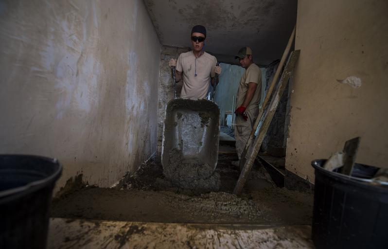 | Keywords: eucom hca humanitarian civic assistance humanitariancivicassistance 435th af georgia tbilisi 435th agow 435thagow 435th cts 435thcts construction usaf usafe renovations building partnership capacity buildingpartnershipcapacity nato united helping nations helpingnations airmen school gymnasium u.s. military engineers usmilitaryengineers europe georgian army georgianarmy u.s. army civil engineers usarmycivilengineers gori U.S. Air Force Staff Sgt. David Dengate, 435th Construction Training Squadron pavement and equipment operator, watches as Airman 1st Class Cole Kasten, 52nd Civil Engineer Squadron pavement and heavy equipment operator, pours cement as they build a new ramp for disabled students at Public School No. 4 in Gori, Georgia, Aug. 28, 2015. The restoration of the gymnasium was part of the Georgian Humanitarian and Civic Assistance project, which supports national military strategy and enhances the operational readiness skills of military personnel while providing substantial benefits to host country populations. Humanitarian and Civic Assistance projects enhance operational readiness of military personnel while providing mutual support to the host nation's population. (U.S. Air Force photo/Staff Sgt. Sara Keller) U.S. Air Force Staff Sgt. David Dengate, 435th Construction Training Squadron pavement and equipment operator, watches as Airman 1st Class Cole Kasten, 52nd Civil Engineer Squadron pavement and heavy equipment operator, pours cement as they build a new ramp for disabled students at Public School No. 4 in Gori, Georgia, Aug. 28, 2015. The restoration of the gymnasium was part of the Georgian Humanitarian and Civic Assistance project, which supports national military strategy and enhances the operational readiness skills of military personnel while providing substantial benefits to host country populations. Humanitarian and Civic Assistance projects enhance operational readiness of military personnel while providing mutual support to the host nation's population. (U.S. Air Force photo/Staff Sgt. Sara Keller) |