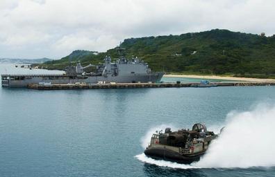 | Keywords: sailors war fighters warfighters war fighting warfighting fast flexible worldwide deployed on watch onwatch preserve peace preservepeace deter aggression deteraggression defend freedom defendfreedom heritage operate forward operateforward be ready beready tradition freedom protect commerce sea lanes sealanes liberty navy u.s. navy usnavy america united states unitedstates military war fighting first warfightingfirst nmcs navy media content service navymediacontentservice chinfo okinawa japan outdoor water watercourse waterfront 150828-N-JH293-017: OKINAWA, Japan (Aug. 28, 2015) Landing Craft Air Cushion (LCAC) 9, assigned to Naval Beach Unit (NBU) 7 passes by the amphibious dock landing ship USS Ashland (LSD 48). LCAC 9 offloaded the 31st Marine Expeditionary Unit's (31st MEU) equipment from the well deck of the amphibious transport dock ship USS Green Bay (LPD 20). Green Bay and Ashland are assigned to the Bonhomme Richard Expeditionary Strike Group and are on patrol in the U.S. 7th Fleet area of operations. (U.S. Navy photo by Mass Communication Specialist 2nd Class Chris Williamson. 150828-N-JH293-017: OKINAWA, Japan (Aug. 28, 2015) Landing Craft Air Cushion (LCAC) 9, assigned to Naval Beach Unit (NBU) 7 passes by the amphibious dock landing ship USS Ashland (LSD 48). LCAC 9 offloaded the 31st Marine Expeditionary Unit's (31st MEU) equipment from the well deck of the amphibious transport dock ship USS Green Bay (LPD 20). Green Bay and Ashland are assigned to the Bonhomme Richard Expeditionary Strike Group and are on patrol in the U.S. 7th Fleet area of operations. (U.S. Navy photo by Mass Communication Specialist 2nd Class Chris Williamson. |
