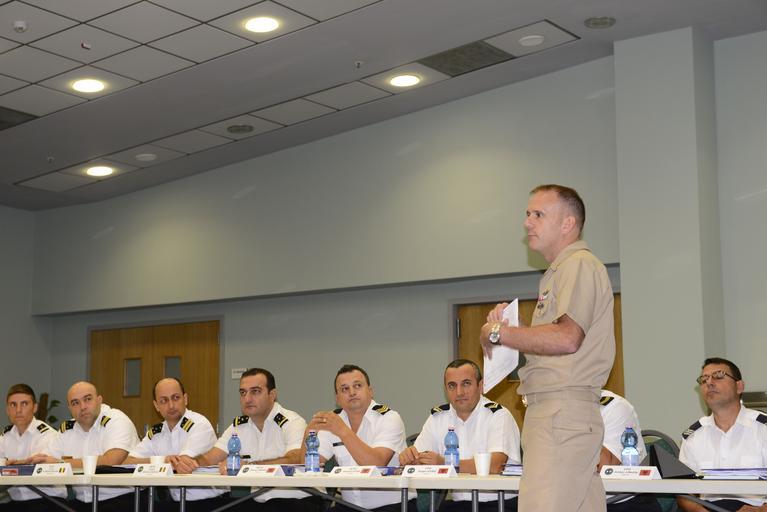 | Keywords: indoor room auditorium 150911-N-SS492-016 NAPLES, Italy (Sept. 11, 2015) Naval Forces Europe-Africa Fleet Master Chief Steven Giordano speaks with senior enlisted representatives from eight nations during the 2015 Eurasia Partnership Senior NCO Development Workshop, Sept. 11, 2015. The four-day event is geared towards learning and sharing experiences, fostering the growth of senior enlisted ranks across the participating nations. (U.S. Navy photo by Chief (Select) Mass Communication Specialist Brian P. Biller/Released) 150911-N-SS492-016 NAPLES, Italy (Sept. 11, 2015) Naval Forces Europe-Africa Fleet Master Chief Steven Giordano speaks with senior enlisted representatives from eight nations during the 2015 Eurasia Partnership Senior NCO Development Workshop, Sept. 11, 2015. The four-day event is geared towards learning and sharing experiences, fostering the growth of senior enlisted ranks across the participating nations. (U.S. Navy photo by Chief (Select) Mass Communication Specialist Brian P. Biller/Released) |