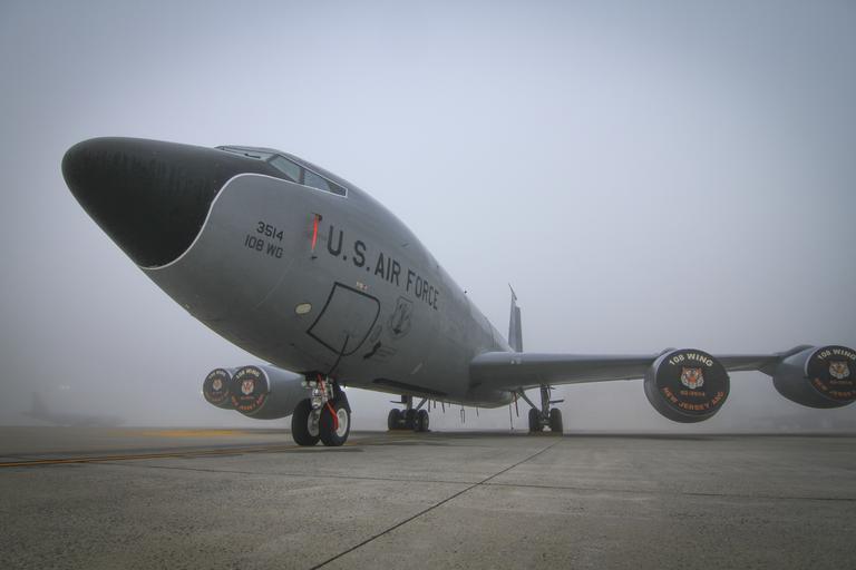MAKE A MEME View Large Image Air Force KC-135 Stratotanker from the New Jersey Air National Guard's 108th Wing sits on a foggy flight line at Joint Base McGuire-Dix-Lakehurst, N.J., Sept. 19, 2015. (U.S. Air National Guard photo by Tech. Sgt. Matt Hecht/Released) A ...