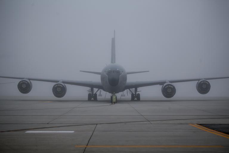MAKE A MEME View Large Image Air Force KC-135 Stratotanker from the New Jersey Air National Guard's 108th Wing sits on a foggy flight line at Joint Base McGuire-Dix-Lakehurst, N.J., Sept. 19, 2015. (U.S. Air National Guard photo by Tech. Sgt. Matt Hecht/Released) A ...