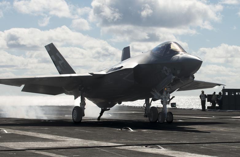 Keywords: andrew mcmurtrie andrewmcmurtrie f-35 f35 f-35c f35c navy pax river itf paxriveritf nas patuxent river naspatuxentriver navair vx-23 vx23 pax river paxriver itf cf-03 cf03 cf-05 cf05 uss dwight d. eisenhower ussdwightdeisenhower cvn 69 cvn69 carrier naval aviation navalaviation joint strike fighter jointstrikefighter jsf atlantic ocean atlanticocean outdoor aircraft vehicle airplane ATLANTIC OCEAN (Oct. 2, 2015) Cmdr. Tony "Brick" Wilson makes an arrested landing with an F-35C Lightning II aboard USS Dwight D. Eisenhower (CVN 69) during the second developmental test (DT-II) phase of the next-generation strike fighter. Wilson made naval aviation history Nov. 3, 2014 when he made the inaugural F-35C arrested landing aboard the flight deck of a U.S. Navy aircraft carrier. Wilson and a team from the F-35 Lightning II Pax River Integrated Test Force from Air Test and Evaluation Squadron (VX) 23 are conducting carrier suitability and integration testing of the F-35C. (U.S. Navy Photo Courtesy Lockheed Martin Photo by Andrew McMurtrie/Released) ATLANTIC OCEAN (Oct. 2, 2015) Cmdr. Tony "Brick" Wilson makes an arrested landing with an F-35C Lightning II aboard USS Dwight D. Eisenhower (CVN 69) during the second developmental test (DT-II) phase of the next-generation strike fighter. Wilson made naval aviation history Nov. 3, 2014 when he made the inaugural F-35C arrested landing aboard the flight deck of a U.S. Navy aircraft carrier. Wilson and a team from the F-35 Lightning II Pax River Integrated Test Force from Air Test and Evaluation Squadron (VX) 23 are conducting carrier suitability and integration testing of the F-35C. (U.S. Navy Photo Courtesy Lockheed Martin Photo by Andrew McMurtrie/Released) |