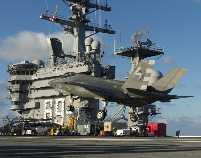 Keywords: f-35 f35 f-35c f35c navy pax river itf paxriveritf nas patuxent river naspatuxentriver navair vx-23 vx23 pax river paxriver itf cf-03 cf03 cf-05 cf05 uss dwight d. eisenhower ussdwightdeisenhower cvn 69 cvn69 carrier naval aviation navalaviation joint strike fighter jointstrikefighter jsf atlantic ocean atlanticocean outdoor ATLANTIC OCEAN (Oct. 3, 2015) F-35C Lightning II aircraft 73/CF-03 makes an arrested landing as two F-35C Lightning II carrier variant Joint Strike Fighters from the Pax River Integrated Test Force (ITF) conduct flight test operations aboard the aircraft carrier USS Dwight D. Eisenhower (CVN 69). The aircraft arrived Oct. 2 to begin the second phase of carrier suitability and integration testing of the F-35C carrier variant of the Joint Strike Fighter. (U.S. Navy photo courtesy Lockheed Martin photo by Andy Wolfe/Released) ATLANTIC OCEAN (Oct. 3, 2015) F-35C Lightning II aircraft 73/CF-03 makes an arrested landing as two F-35C Lightning II carrier variant Joint Strike Fighters from the Pax River Integrated Test Force (ITF) conduct flight test operations aboard the aircraft carrier USS Dwight D. Eisenhower (CVN 69). The aircraft arrived Oct. 2 to begin the second phase of carrier suitability and integration testing of the F-35C carrier variant of the Joint Strike Fighter. (U.S. Navy photo courtesy Lockheed Martin photo by Andy Wolfe/Released) |