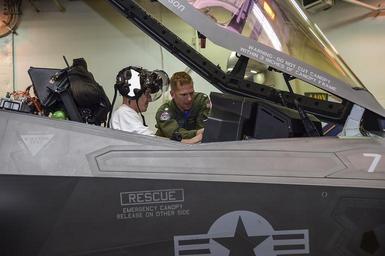 Keywords: ike co capt. stephen t. koehler captstephentkoehler f-35 f35 vx 23 vx23 tour uss dwight d. eisenhower ussdwightdeisenhower atlantic ocean atlanticocean 151004-N-QS750-149. ATLANTIC OCEAN (Oct. 4, 2015) Capt. Stephen T. Koehler, commanding officer of USS Dwight D. Eisenhower (CVN 69), sits in the cockpit of an F-35C Lightning II carrier variant joint strike fighter assigned to the Salty Dogs of Air Test and Evaluation Squadron (VX) 23 in the hangar bay. The F-35C Lightning II Pax River Integrated Test Force is currently conducting follow-on sea trials aboard the Eisenhower. (U.S. Navy photo by Mass Communication Specialist 3rd Class Corey Dill) 151004-N-QS750-149. ATLANTIC OCEAN (Oct. 4, 2015) Capt. Stephen T. Koehler, commanding officer of USS Dwight D. Eisenhower (CVN 69), sits in the cockpit of an F-35C Lightning II carrier variant joint strike fighter assigned to the Salty Dogs of Air Test and Evaluation Squadron (VX) 23 in the hangar bay. The F-35C Lightning II Pax River Integrated Test Force is currently conducting follow-on sea trials aboard the Eisenhower. (U.S. Navy photo by Mass Communication Specialist 3rd Class Corey Dill) |