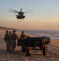 | Keywords: trident juncture 15 tridentjuncture15 marines u.s. marines usmarines 26 meu 26meu 26th marine expeditionary unit 26thmarineexpeditionaryunit hst ch-53e sea stallion ch53eseastallion sunset training beach landing support specialist landingsupportspecialist ls landing support detachment landingsupportdetachment outdoor 151029-M-WC184-003 PINHEIRO DA CRUZ, PRAIA DA RAPOSA, Portugal – U.S. Marines with the Helicopter Support Team, Landing Support Detachment, 26th Marine Expeditionary Unit, embarked aboard the amphibious transport dock ship USS Arlington (LPD 24) wait to perform an external lift with a M105 trailer while a CH-53E Super Stallion with Marine Medium Tilt rotor Squadron 162 (VMM-162), 26th MEU, embarked aboard the USS Arlington, approaches during an external lift training exercise at Pinheiro Da Cruz, Praia Da Raposa Beach, Portugal, Oct. 22, 2015, during Trident Juncture 15. Trident Juncture is a NATO-led exercise designed to certify NATO response forces and develop interoperability among participating NATO and partner nations. (United States Marine Corps photo by Sgt. Austin Long/ Released) 151029-M-WC184-003 PINHEIRO DA CRUZ, PRAIA DA RAPOSA, Portugal – U.S. Marines with the Helicopter Support Team, Landing Support Detachment, 26th Marine Expeditionary Unit, embarked aboard the amphibious transport dock ship USS Arlington (LPD 24) wait to perform an external lift with a M105 trailer while a CH-53E Super Stallion with Marine Medium Tilt rotor Squadron 162 (VMM-162), 26th MEU, embarked aboard the USS Arlington, approaches during an external lift training exercise at Pinheiro Da Cruz, Praia Da Raposa Beach, Portugal, Oct. 22, 2015, during Trident Juncture 15. Trident Juncture is a NATO-led exercise designed to certify NATO response forces and develop interoperability among participating NATO and partner nations. (United States Marine Corps photo by Sgt. Austin Long/ Released) |