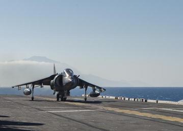 | Keywords: lhd 3; kearsarge; underway; av-8b harrier; usmc; egemen-15 lhd3kearsargeunderwayav8bharrierusmcegemen15 aegean sea aegeansea outdoor 151026-N-YL073-124 AEGEAN SEA (Oct. 26, 2015) An AV-8B Harrier takes off from the flight deck of the amphibious assault ship USS Kearsarge (LHD 3) during flight operations during Egemen 2015, Oct. 26, 2015. Egemen is a Turkish-led and hosted amphibious exercise designed to increase tactical proficiencies and interoperability among participants. Kearsarge, deployed as part of the Kearsarge Amphibious Ready Group, is conducting naval operations in the U.S. 6th Fleet area of operations in support of U.S. national security interests in Europe. (U.S. Navy Photo by Mass Communication Specialist 2nd Class Shamira Purifoy/Released) 151026-N-YL073-124 AEGEAN SEA (Oct. 26, 2015) An AV-8B Harrier takes off from the flight deck of the amphibious assault ship USS Kearsarge (LHD 3) during flight operations during Egemen 2015, Oct. 26, 2015. Egemen is a Turkish-led and hosted amphibious exercise designed to increase tactical proficiencies and interoperability among participants. Kearsarge, deployed as part of the Kearsarge Amphibious Ready Group, is conducting naval operations in the U.S. 6th Fleet area of operations in support of U.S. national security interests in Europe. (U.S. Navy Photo by Mass Communication Specialist 2nd Class Shamira Purifoy/Released) |