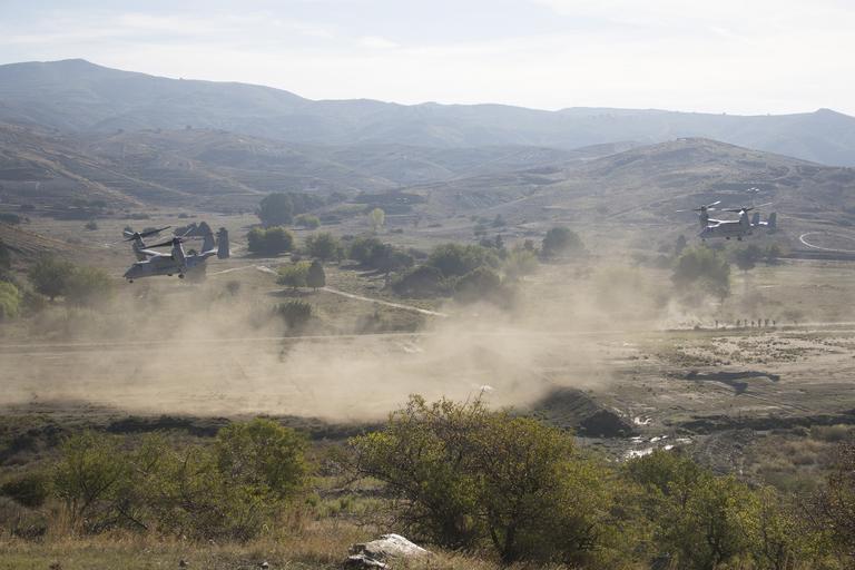 | Keywords: usmc exercise egemen exerciseegemen turkey ampibious assault ampibiousassault bi-lateral training bilateraltraining beach lcac mv-22 mv22 osprey comcam phibron 4 phibron4 kearsarge amphibious ready group kearsargeamphibiousreadygroup amphibious squadron 4 amphibioussquadron4 doganbey outdoor landscape mountainside hill foothill mountain sky 151027-M-OQ277-166 DOGANBEY, Turkey (Oct. 27, 2015) U.S. Marine MV-22B Osprey, assigned to Marine Medium Tiltrotor Squadron 162 (Reinforced), 26th Marine Expeditionary Unit, take off from a landing zone during a joint amphibious assault as part of exercise Egemen 2015 in Doganbey, Turkey, Oct. 27. Egemen is a Turkish-led and hosted amphibious exercise designed to increase tactical proficiencies and interoperability among participants. The 26th Marine Expeditionary Unit is deployed to the 6th fleet area of in support of U.S. national security interests in Europe. (U.S. Marine Corps photo by Gunnery Sgt. Andrew D. Pendracki/ Released)  151027-M-OQ277-166 DOGANBEY, Turkey (Oct. 27, 2015) U.S. Marine MV-22B Osprey, assigned to Marine Medium Tiltrotor Squadron 162 (Reinforced), 26th Marine Expeditionary Unit, take off from a landing zone during a joint amphibious assault as part of exercise Egemen 2015 in Doganbey, Turkey, Oct. 27. Egemen is a Turkish-led and hosted amphibious exercise designed to increase tactical proficiencies and interoperability among participants. The 26th Marine Expeditionary Unit is deployed to the 6th fleet area of in support of U.S. national security interests in Europe. (U.S. Marine Corps photo by Gunnery Sgt. Andrew D. Pendracki/ Released) |