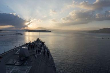 | Keywords: us navy usnavy navy mc navymc npase-east npaseeast navy public affairs navypublicaffairs sailors europe 6th fleet 6thfleet uss donald cook ussdonaldcook ddg 75 ddg75 patrol snmg2 nato active endeavour activeendeavour souda bay soudabay greece outdoor sea ocean water sky coast landscape shore 151108-N-TC720-137 SOUDA BAY, Greece (Nov. 8, 2015) USS Donald Cook (DDG 75) gets underway from Souda Bay, Greece, following a regularly scheduled port visit Nov. 8, 2015. Donald Cook, an Arleigh Burke-class guided-missile destroyer, forward deployed to Rota, Spain is conducting a routine patrol in the U.S. 6th Fleet area of operations in support of U.S. national security interests in Europe. (U.S. Navy photo by Mass Communication Specialist 3rd Class Mat Murch/Released) 151108-N-TC720-137 SOUDA BAY, Greece (Nov. 8, 2015) USS Donald Cook (DDG 75) gets underway from Souda Bay, Greece, following a regularly scheduled port visit Nov. 8, 2015. Donald Cook, an Arleigh Burke-class guided-missile destroyer, forward deployed to Rota, Spain is conducting a routine patrol in the U.S. 6th Fleet area of operations in support of U.S. national security interests in Europe. (U.S. Navy photo by Mass Communication Specialist 3rd Class Mat Murch/Released) |