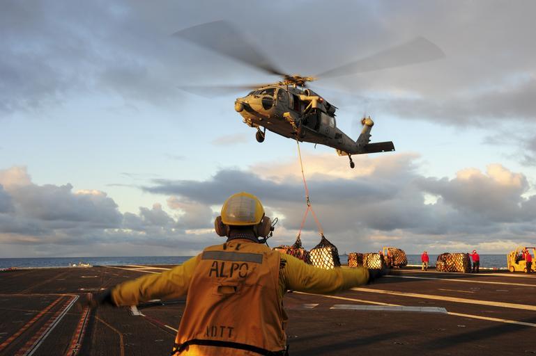 Keywords: abh1 arias abh1arias hsc 7 hsc7 cvn 69 cvn69 usns kanawha usnskanawha ras daily release dailyrelease mc3 jackson mc3jackson november 29 november29 uss dwight d. eisenhower ussdwightdeisenhower atlantic ocean atlanticocean outdoor 151129-N-FI568-031 . ATLANTIC OCEAN (Nov. 29, 2015) - Aviation Boatswain's Mate (Handling) 1st Class Manuel Arias signals to an MH-60S Sea Hawk helicopter assigned to the Dusty Dogs of Helicopter Sea Combat Squadron (HSC) 7 to lower its cargo onto the flight deck of the aircraft carrier USS Dwight D. Eisenhower (CVN 69) during a replenishment at sea with the Military Sealift Command fleet replenishment oiler USNS Kanawha (T-AO 196). Dwight D. Eisenhower, with embarked Carrier Air Wing 3, is underway conducting the Tailored Ship's Training Availability (TSTA) and Final Evaluation Problem (FEP) as part of the basic phase of the Optimized Fleet Response Plan. (U.S. Navy photo by Mass Communication Specialist 3rd Class Taylor L. Jackson/Released) 151129-N-FI568-031 . ATLANTIC OCEAN (Nov. 29, 2015) - Aviation Boatswain's Mate (Handling) 1st Class Manuel Arias signals to an MH-60S Sea Hawk helicopter assigned to the Dusty Dogs of Helicopter Sea Combat Squadron (HSC) 7 to lower its cargo onto the flight deck of the aircraft carrier USS Dwight D. Eisenhower (CVN 69) during a replenishment at sea with the Military Sealift Command fleet replenishment oiler USNS Kanawha (T-AO 196). Dwight D. Eisenhower, with embarked Carrier Air Wing 3, is underway conducting the Tailored Ship's Training Availability (TSTA) and Final Evaluation Problem (FEP) as part of the basic phase of the Optimized Fleet Response Plan. (U.S. Navy photo by Mass Communication Specialist 3rd Class Taylor L. Jackson/Released)