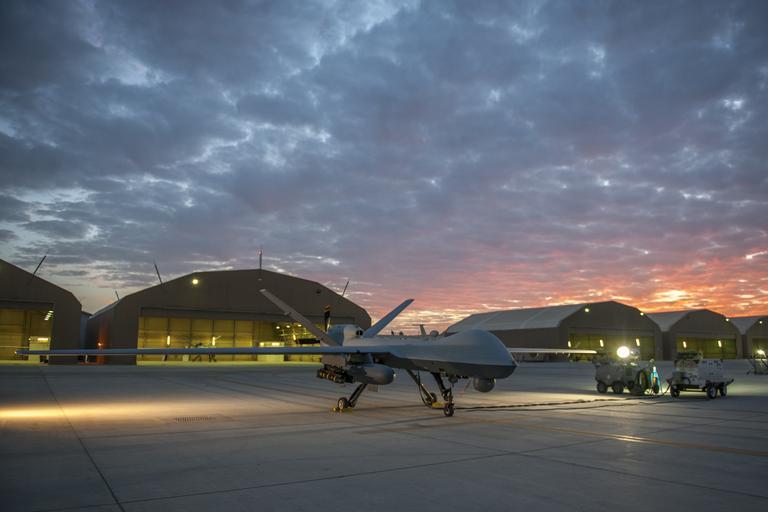 | Keywords: 455th aew 455thaew kandahar airfield kandaharairfield kandahar afghanistan freedom's sentinel freedomssentinel 62nd 62nd expeditionary reconnaissance squadron 62ndexpeditionaryreconnaissancesquadron reaper mq-9 mq9 reconnaissance extended range extendedrange er af outdoor An MQ-9 Reaper equipped with an extended range modification from the 62nd Expeditionary Reconnaissance Squadron sits on the ramp at Kandahar Airfield, Afghanistan, Dec. 6, 2015. The ER modification allows for 20 to 40 percent additional flight time dependent on the aircraft's loadout. (U.S. Air Force photo by Tech. Sgt. Robert Cloys/Released) An MQ-9 Reaper equipped with an extended range modification from the 62nd Expeditionary Reconnaissance Squadron sits on the ramp at Kandahar Airfield, Afghanistan, Dec. 6, 2015. The ER modification allows for 20 to 40 percent additional flight time dependent on the aircraft's loadout. (U.S. Air Force photo by Tech. Sgt. Robert Cloys/Released)  |