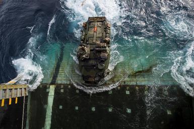 Keywords: 151209-N-VS214-255 PACIFIC OCEAN (Dec. 09, 2015) An amphibious assault vehicle (AAV) assigned to the 13th Marine Expeditionary Unit (13th MUE) enters the well deck of dock landing ship USS Harpers Ferry (LSD 49). The Boxer Amphibious Ready Group (ARG) is underway off the coast of Southern California completing a certification exercise (CERTEX). CERTEX is the final evaluation of the 13th MEU and Boxer ARG prior to deployment and is intended to certify their readiness to conduct integrated missions across the full spectrum of military operations. (U.S. Navy photo by Mass Communications Specialist 3rd Class Zachary Eshleman/Released) 151209-N-VS214-255 PACIFIC OCEAN (Dec. 09, 2015) An amphibious assault vehicle (AAV) assigned to the 13th Marine Expeditionary Unit (13th MUE) enters the well deck of dock landing ship USS Harpers Ferry (LSD 49). The Boxer Amphibious Ready Group (ARG) is underway off the coast of Southern California completing a certification exercise (CERTEX). CERTEX is the final evaluation of the 13th MEU and Boxer ARG prior to deployment and is intended to certify their readiness to conduct integrated missions across the full spectrum of military operations. (U.S. Navy photo by Mass Communications Specialist 3rd Class Zachary Eshleman/Released) |