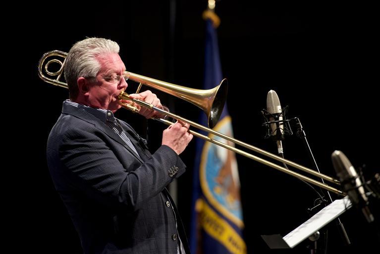 Keywords: musician people performer CHICAGO (Dec. 17, 2015) Jazz artist Jim Pugh, professor of jazz studies at the University of Illinois, performs with the U.S. Navy Band Commodores at the 2015 Midwest Clinic in Chicago. The Midwest Clinic, a four-day conference attended by more than 17,000 musicians, educators and students, is the largest event of its kind. (U.S. Navy photo by Chief Musician Adam Grimm/Released) CHICAGO (Dec. 17, 2015) Jazz artist Jim Pugh, professor of jazz studies at the University of Illinois, performs with the U.S. Navy Band Commodores at the 2015 Midwest Clinic in Chicago. The Midwest Clinic, a four-day conference attended by more than 17,000 musicians, educators and students, is the largest event of its kind. (U.S. Navy photo by Chief Musician Adam Grimm/Released) |