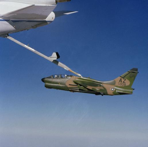 Keywords: 152d Tactical Fighter Squadron A-7K Corsair II 73-1008 Refueling.jpg en A Vought YA-7K Corsair II s/n 73-1008 of the 162nd Fighter Wing Arizona Air National Guard based at Tucson Internationa Airport Arizona USA is being refueled in flight by a McDonnell Douglas KC-10A Extender aircraft over Edwards Air Force Base California USA on 21 Apr 1982 1973 Delivered to 355th Tactical Fighter Wing/354th TFS Davis-Monthan AFB AZ c/n D-404 Transferred to 354th Tactical Fighter Wing/355th TFS Myrtle Beach AFB SC 1973 Transferred to 186th Tactical Fighter Squadron OK Air National Guard 1977 Removed from operational service flown to LTV at Hensley Field Naval Air Station Dallas for modification to YA-7K 1979 Delivered as A-7K to to 4450th Tactical Group/4451st TS Nellis AFB NV 1981 Transferred to 152d Tactical Fighter Squadron AZ Air National Guard 1989 Transferred to 198th Tactical Fighter Squadron PR Air National Guard 1990 Transferred to AMARC as AE0033 Jun 19 1991 Disposition 15-JUN-98 / To Fritz Enterprises Taylor MI Actually to HVF West yard Tucson Scrapped U S DefenseImagery http //www defenseimagery mil photo VIRIN DF-SC-83-05366 http //www dodmedia osd mil/DVIC_View/Still_Details cfm SDAN DFSC8305366 JPGPath /Assets/1986/Navy/DF-SC-83-05366 JPG 1982-04-21 Camera Operator Harrison USAF PD-USGov DEFAULTSORT Squadron 0152 A-7K Corsair II Aerial refueling 162d Fighter Wing Arizona Air National Guard A-7K Corsair II of the Arizona Air National Guard |