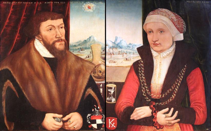 | Keywords: 1550 Doppelportrait eines patrizischen Ehepaares anagoria.JPG  Artwork Creator unknown title Doppelporträt eines patrizischen Ehepaares Double portrait of a patrician couple Double portrait d'un couple patricienne Alternate title de Entstehungslandschaft Sachsen 1550 Oil on wood each panel cm 56 43 Institution Deutsches Historisches Museum accession number Gm 94/34; Gm 94/35 http //www dhm de/datenbank/dhm php seite 5 fld_0 K1000790 Deutsches Historisches Museum anagoria other versions PD-old-100 DEFAULTSORT Anonymous Double portrait of a patrician couple 16th-century unidentified painters Paintings in the Deutsches Historisches Museum Deutsches Historisches Museum - 16th century 1550 portrait paintings 1550s paintings in Berlin 16th-century oil on canvas paintings in Germany 16th-century oil portraits of men at half length 1550 16th-century oil portraits of women at half length 1550 16th-century pendant portrait paintings of wedded couples 16th-century portrait paintings in Germany 1550 16th-century portrait paintings of men with black clothing 16th-century portrait paintings of women with red dresses 16th-century portrait paintings with red drapery 16th-century portrait paintings with green drapery 16th-century portrait paintings with coat of arms from Germany Black and red clothing in art female Burning candles in art Females with finger rings in art Fur collars in portrait paintings Fur fashion in 1550 German pendant portrait paintings of wedded couples German Renaissance portrait paintings with window at the background Male portrait paintings with fur clothing Males with finger rings in art Paintings with inscriptions Portrait paintings of men with marten clothing Red curtains in art Red drapery in portrait paintings Portrait paintings with skulls 1550 Portraits with candles Portraits with hourglasses Portraits with landscape Portraits with Latin captions Women with necklaces in art Files by User anagoria |