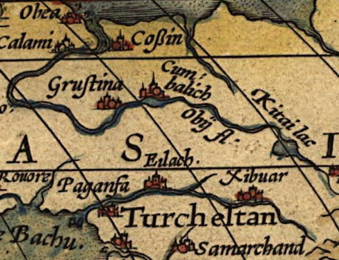 | Keywords: Карта 1570 Typus Ortelius mr fragment.jpg en The fragment of the 1570 world map created by Abraham Ortelius which is showing the disappeared city Grustina in Siberia ru Ф агмент ка ты ми а 1570 г Аб ахама О телия показывающий исчезнувший го од Г устину в Сиби и 1570 Atlas Theatrum Orbis Terrarum published in 1570 creator Abraham Ortelius other versions 100px thumb left The entire map PD-old-100 Theatrum Orbis Terrarum Typus Orbis Terrarum 1570 maps | ||||