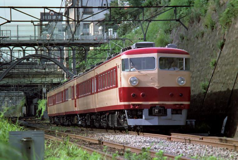 | Keywords: 157series02.JPG A Japanese National Railways 157 series EMU including the KuRo 157 imperial train car on an empty stock working near Meguro on the Yamanote freight line in Tokyo own Shellparakeet 1978-06-19 1978 in rail transport in Japan JNR 157 Rail cars of the Emperor of Japan June 1978 photographs |